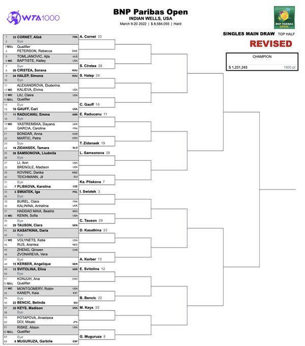 Miami Open Draws Order Of Play For 3 22 21 10sballs Com Tennisballs Com